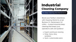 Cleaning World Inc. is a trusted industrial cleaning company serving businesses throughout New Jersey, delivering powerful, large-scale cleaning solutions for warehouses, manufacturing plants, and production facilities. Their services include heavy-duty floor cleaning, equipment area sanitation, dust and debris removal, and high-touch surface disinfection. With a focus on safety, compliance, and efficiency, Cleaning World Inc. helps NJ industrial sites maintain clean, organized, and productive environments that support smooth operations and long-term performance.