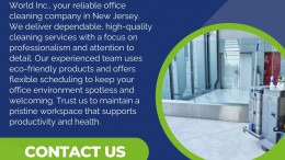 Cleaning World Inc. offers professional office cleaning services throughout New Jersey, helping businesses maintain clean, healthy, and organized workspaces. Their customized cleaning solutions include daily janitorial care, disinfecting high-touch areas, trash removal, restroom sanitation, and floor maintenance. With a focus on reliability and attention to detail, Cleaning World Inc. ensures NJ offices stay spotless, welcoming, and productive for employees and clients alike.