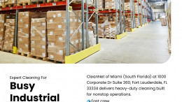 CleanNet of Miami provides expert industrial and warehouse cleaning services in Fort Lauderdale, designed to keep large facilities safe, organized, and efficient. Our trained team handles heavy-duty cleaning, including floors, machinery areas, loading docks, and high-traffic zones, using industrial-grade equipment and proven techniques. With flexible scheduling and tailored service plans, we help maintain a clean, compliant environment that supports productivity and safety.